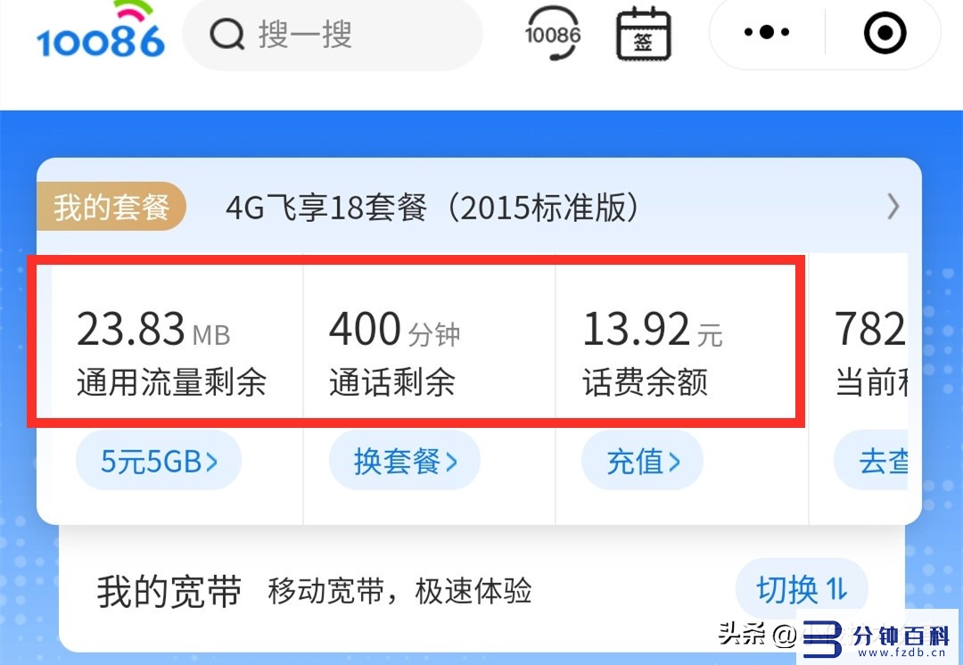 登录成功之后,在这边就可以看到我们的手机卡是什么套餐的,比如我的是4g飞享18元套餐的,也就是说我的手机卡一个月的最低消费是18元的,以及可以看到还剩多少话费,多少流量,剩余多少通话时间等等,在这里都可以看得清清楚楚!
