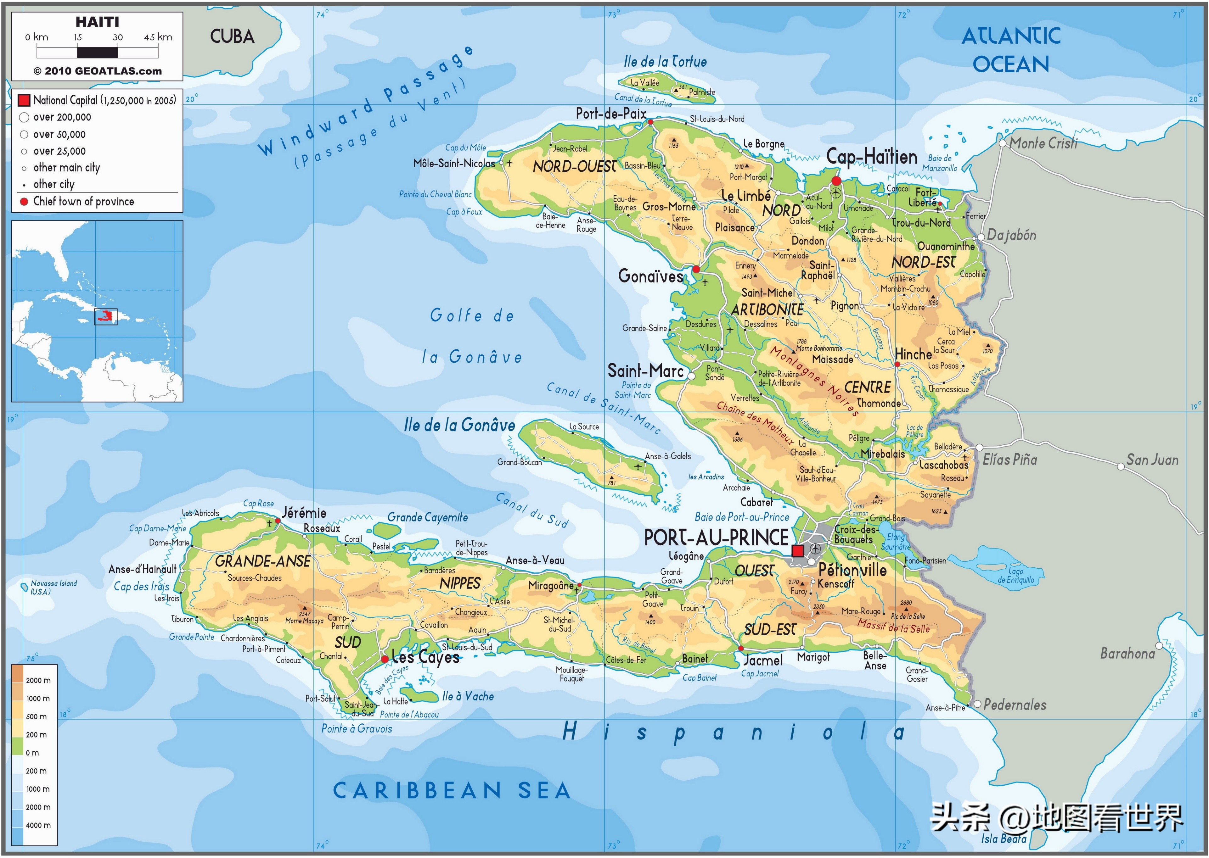 海地全称海地共和国(the republic of haiti),位于加勒比海第二大岛伊斯帕尼奥拉岛西半部,面积27750平方公里,2021年人口1145万。海地大小与我国北京市 天津市相当,人口数量约为我国北京市 天津市的三分之一。海地人均gni为1420美元,是北美洲人均gni最低的最不发达国家。海地的经济以自主农业为主,85%的人口从事农业。由于能源不足,海地的工业非常不发达。海地的失业率极高,三分之二的工人没有固定的工作。海地属中等偏下收入国家,2021年人均gdp为1830美元。在联合国开发计划署(undp)发布的《2021/2022人类发展报告》中,海地的人类发展指数在191个国家(地区)中的排名第163。