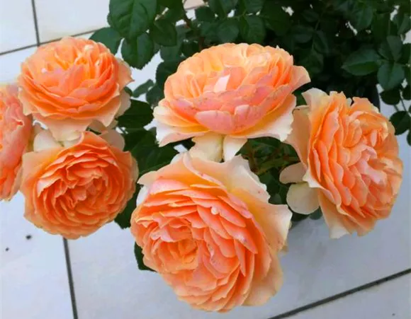 杏色露台这款月季在大花微月里面也是佼佼者,它的花径能达7一10厘米 ,多头丰花,开花时一朵朵紧凑在一起,盛花期能开满整枝条,剪一枝就能成一束插花,看起来非常美。它的夏花表现也很好,基本上能维持一周不散。花香中等浓度,近距离可闻到芳香四溢。