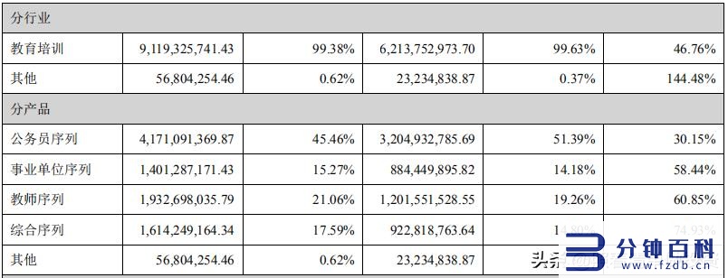 中公教育(002607)2019年报(p11),公司业务概要:中公教育是一家中国领先的全品类职业教育机构,也是招录考试培训领域的开创者和领导者。
