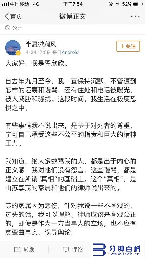就这样,苏享茂的心理防线被击溃,他发布了下面这篇刷爆网络的帖子,称自己被前妻翟欣欣逼死。