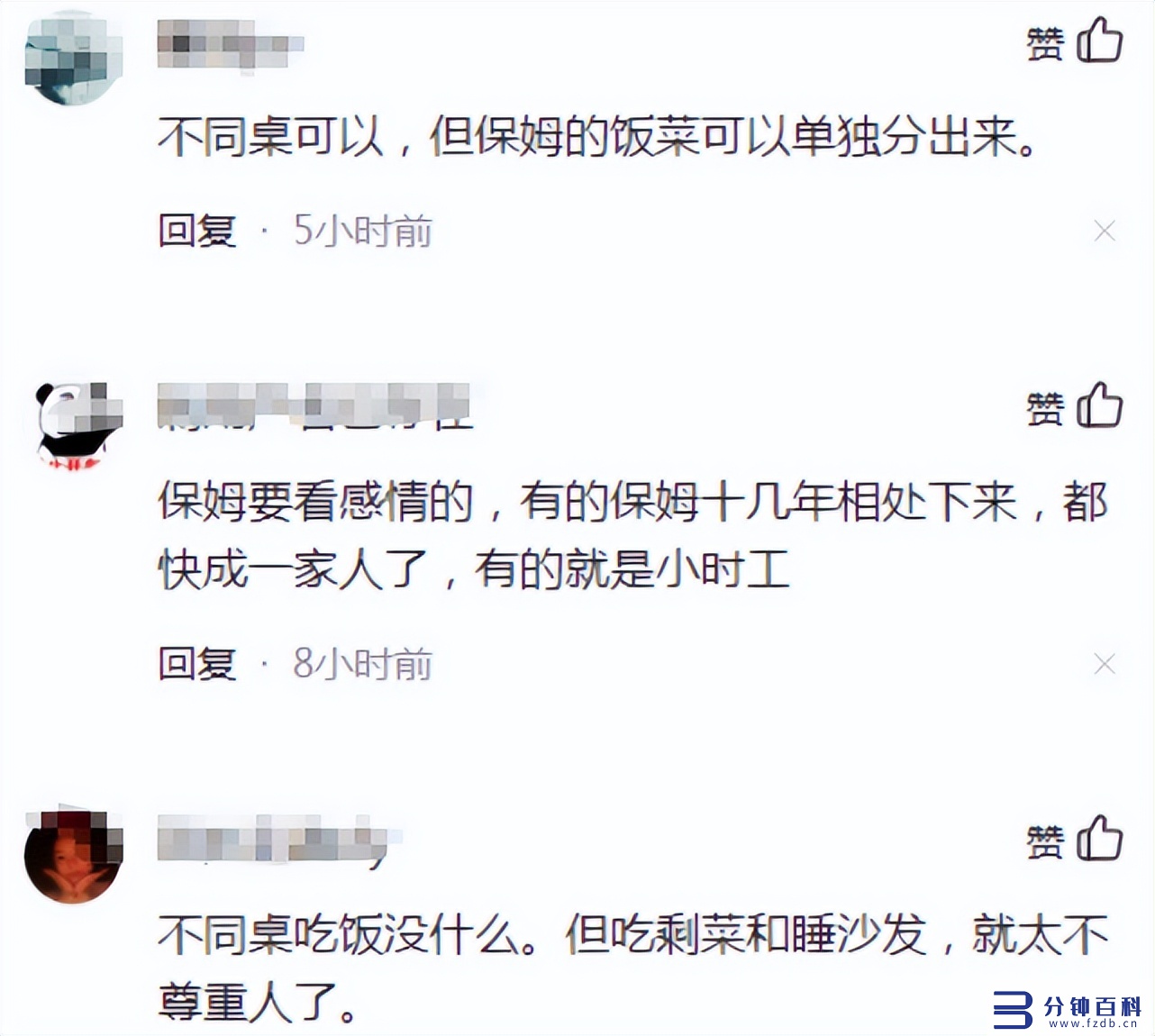 保姆拿着2w的月薪,不是给他们当“垃圾桶”,打扫剩菜剩饭的。不同桌可以理解,双方可能都会不适应。但吃剩饭,睡沙发,确定不是对保姆人格的贬低吗?