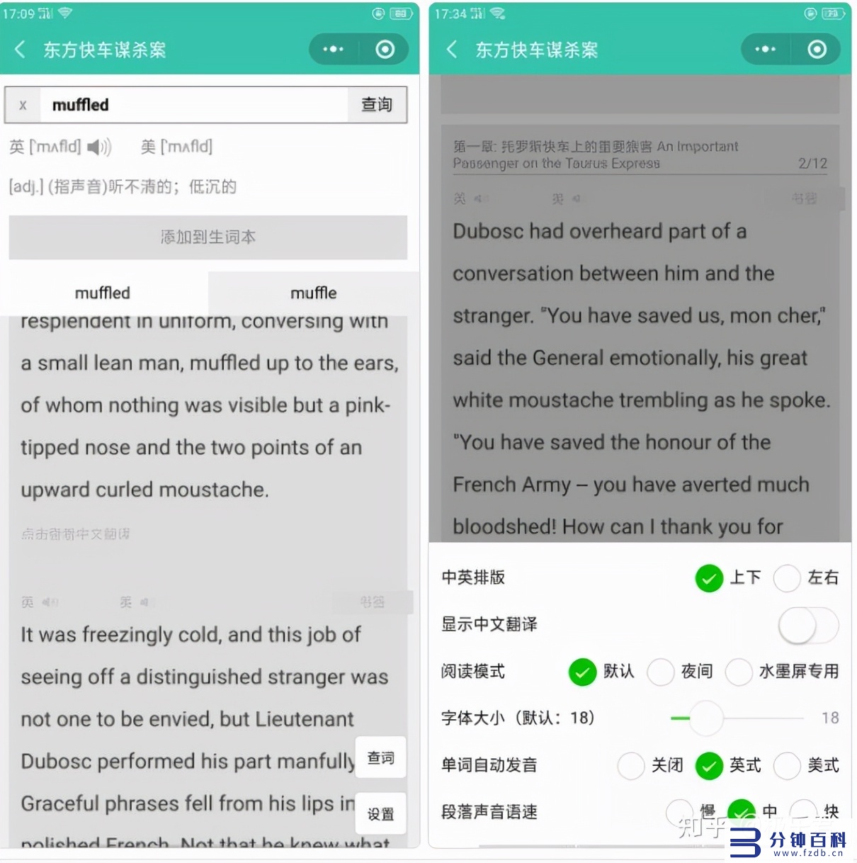 点击单词,就能够浏览中文翻译,听美式或英式发音(你自己选择)!而且,你还可以浏览每一段内容的中文翻译。自己翻译通读之后,可以对比翻译过的内容。